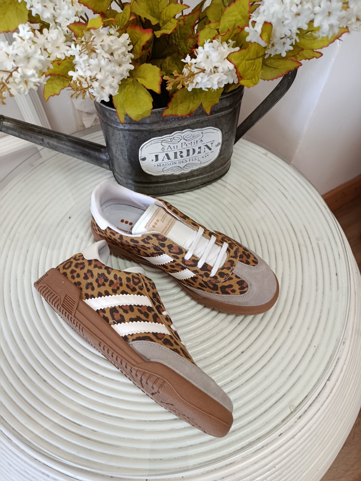 Dale un toque salvaje y sofisticado a tus looks diarios con estas zapatillas de la marca Potomac. Su diseño combina el estampado animal print en tonos cálidos con detalles en contraste, creando un equilibrio perfecto entre tendencia y versatilidad.