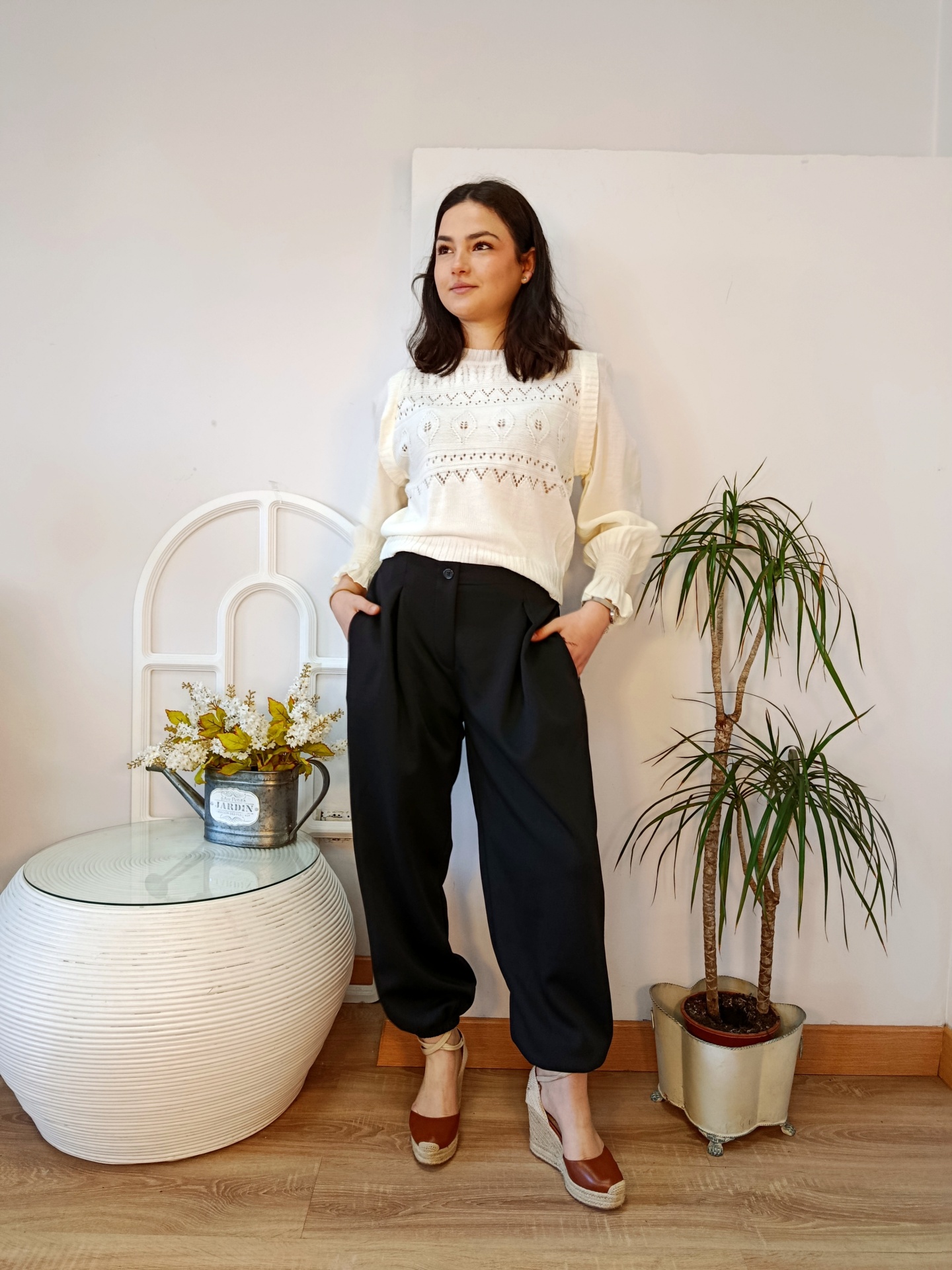 Pantalón balloon en color negro, de corte fluido y cómodo. Con cintura y bajo elástico y acabado moderno, es ideal para crear looks actuales con un toque sofisticado y desenfadado..